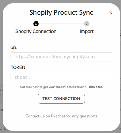 Once connected, you can import your products from Shopify to CREOATE. Review and adjust product details as needed to ensure they match your desired setup on CREOATE.