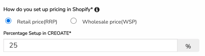 If your product is £10 Retail Price and you choose 50%, the Wholesale Price will be £5