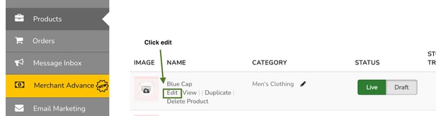 Log into your Dashboard > Products > Edit Product and your product page will open.