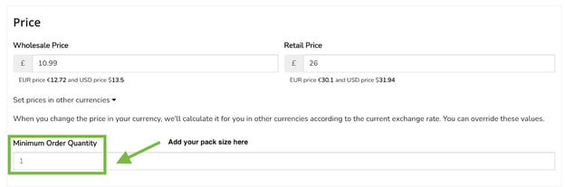 How to add a minimum order quality (MOQ or Pack Size) to a product.